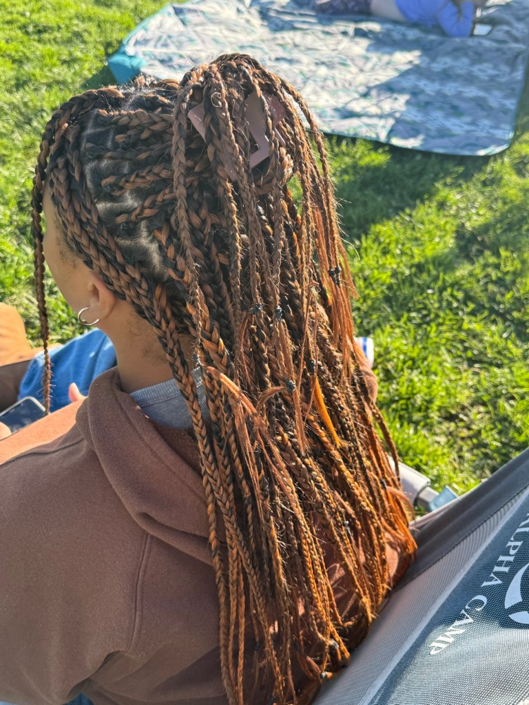 This was my first time braiding in extensions! I have braided so much hair over my 13 years of being the mother of mixed kids, but extensions were totally different to me.
